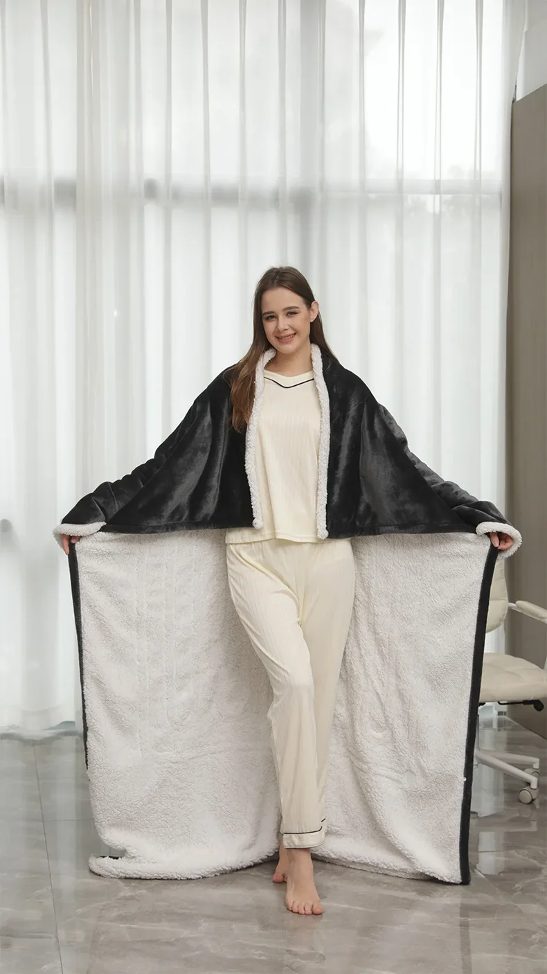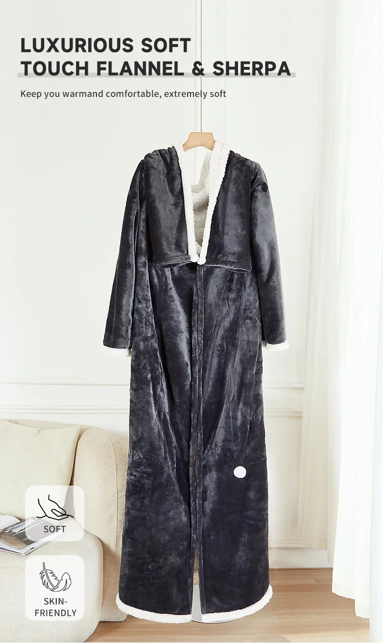 The oversized, ultra-soft heated design wraps your shoulders, chest, legs, and feet in deep, even warmth — like sinking into a heated cloud.